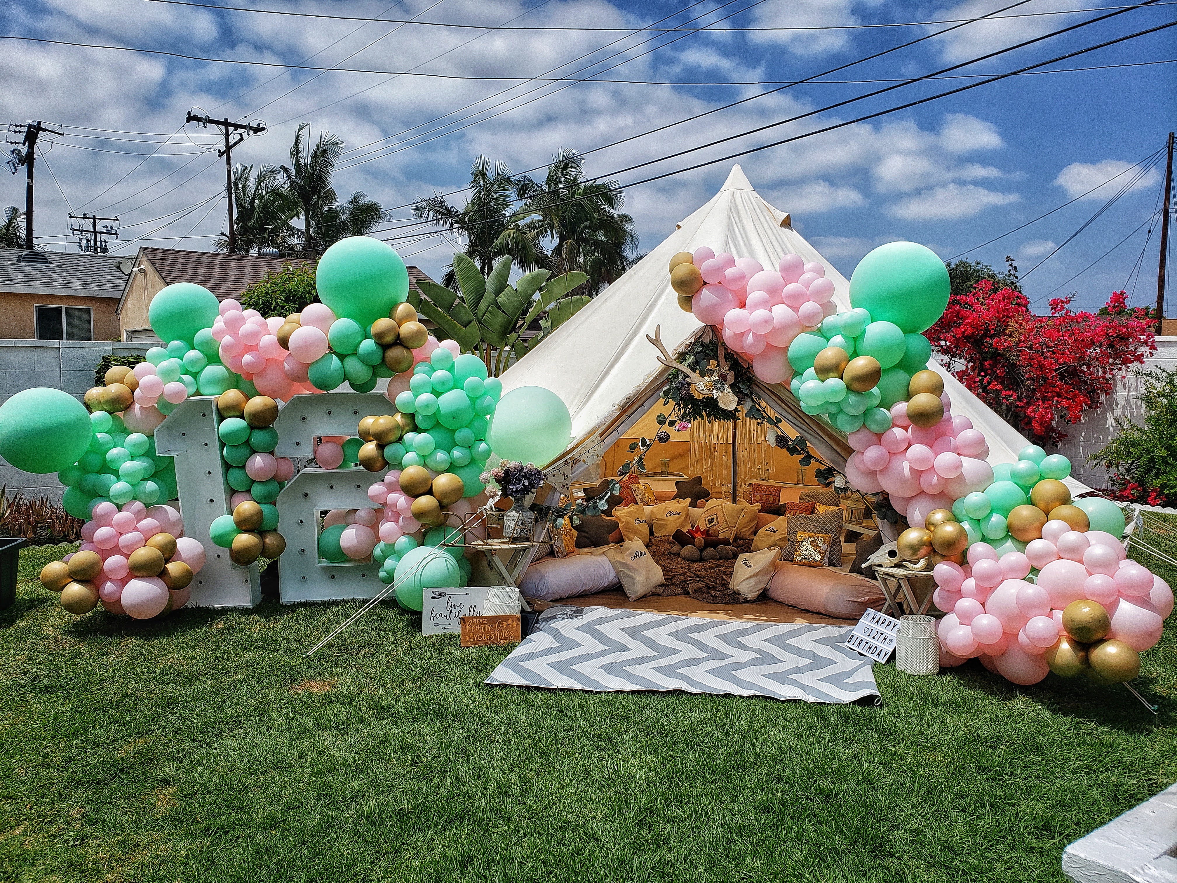 • As with all our Glamping Parties our simple set up and takedown is all covered in standard pricing. You won’t have to worry because we deliver, set up , style, and pick up the next day. You are left to just enjoy your party.